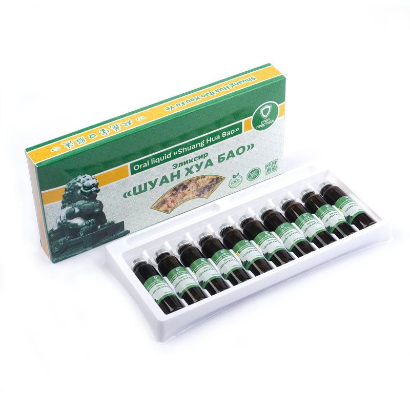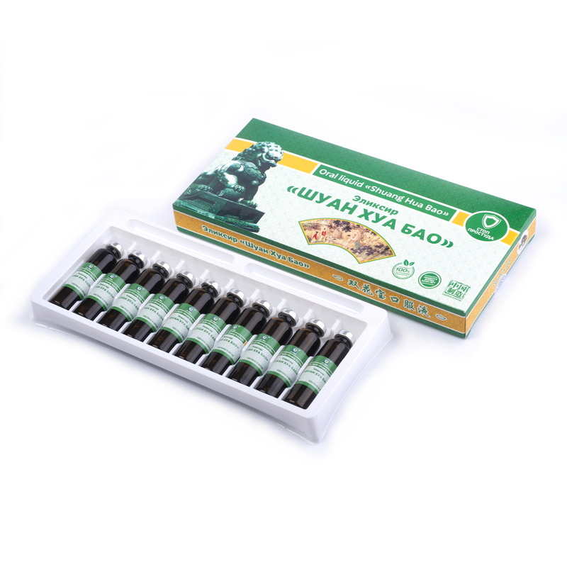 Натуральные ингредиенты, входящие в состав эликсира «Шуан Хуа Бао», еще называют природными антибиотиками: они обладают антибактериальными свойствами и противовирусной активностью; оказывают противовоспалительное действие.