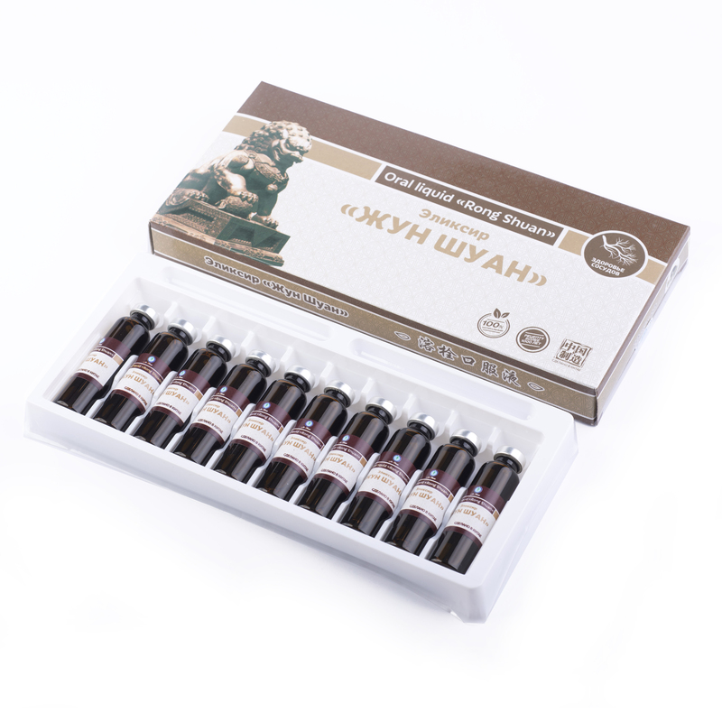 Эликсир «Жун Шуан» применяется в качестве источника полисахаридов, содержащего дубильные вещества, эфирное масло.