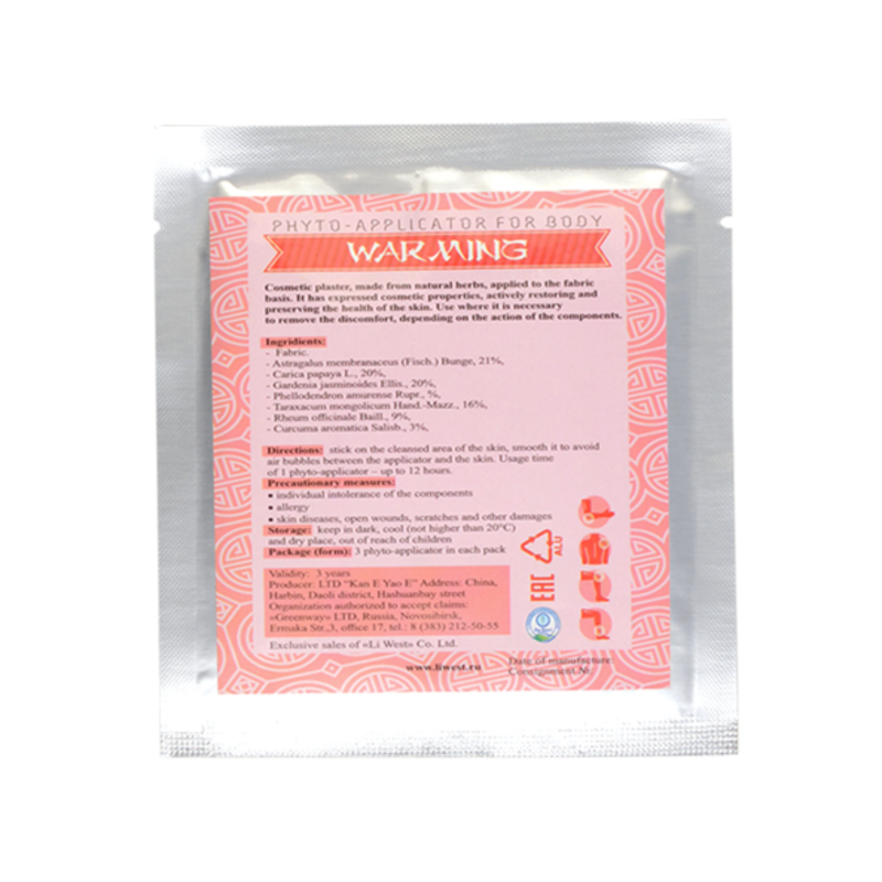 Использовать на различных частях тела для снятия дискомфорта, в соответствии с действием компонентов пластыря. Плотно наклеить на предварительно очищенный участок кожи в области болевой зоны так, чтобы между аппликатором и кожей не оставалось пузырьков воздуха. Зафиксировать бинтом. Время использования одного фитоаппликатора — до 12 часов.
